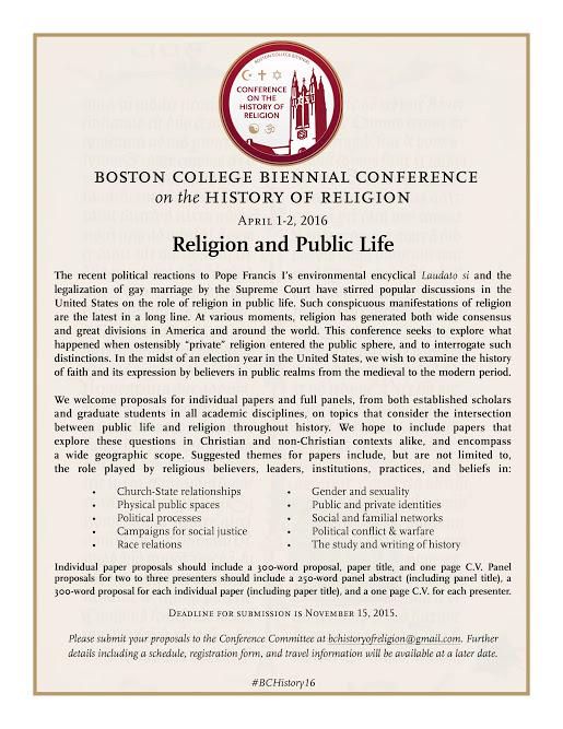 Boston College Biennial Conference on the History of Religion, 1-2 April 2016
